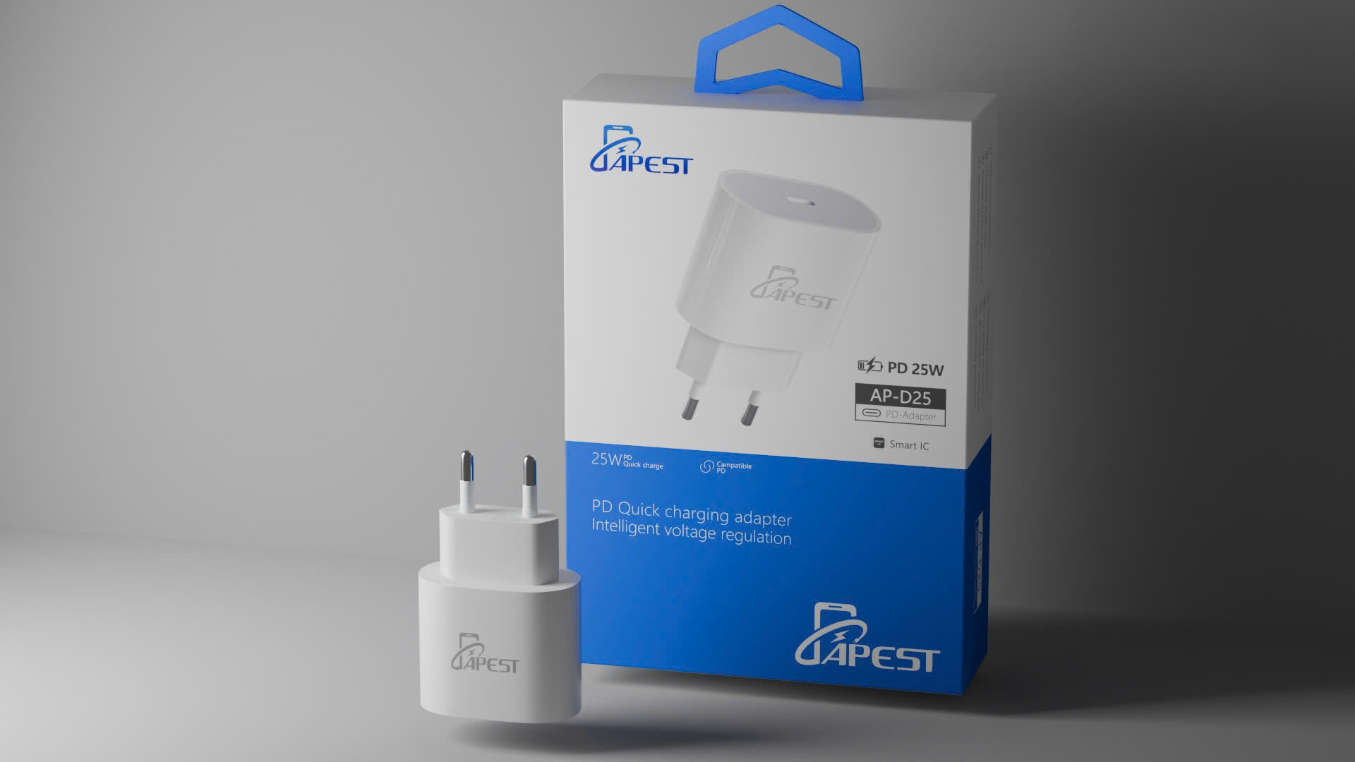 APEST AP-D25 là củ sạc nhanh 25W chuẩn EU, trang bị công nghệ Power Delivery (PD) hiện đại, tương thích hoàn hảo với iPhone, Samsung, Xiaomi, Oppo, Huawei và các thiết bị hỗ trợ sạc nhanh. Với thiết kế chuẩn châu Âu, độ bền cao và khả năng bảo vệ an toàn, AP-D25 là lựa chọn lý tưởng cho người dùng và nhà phân phối.